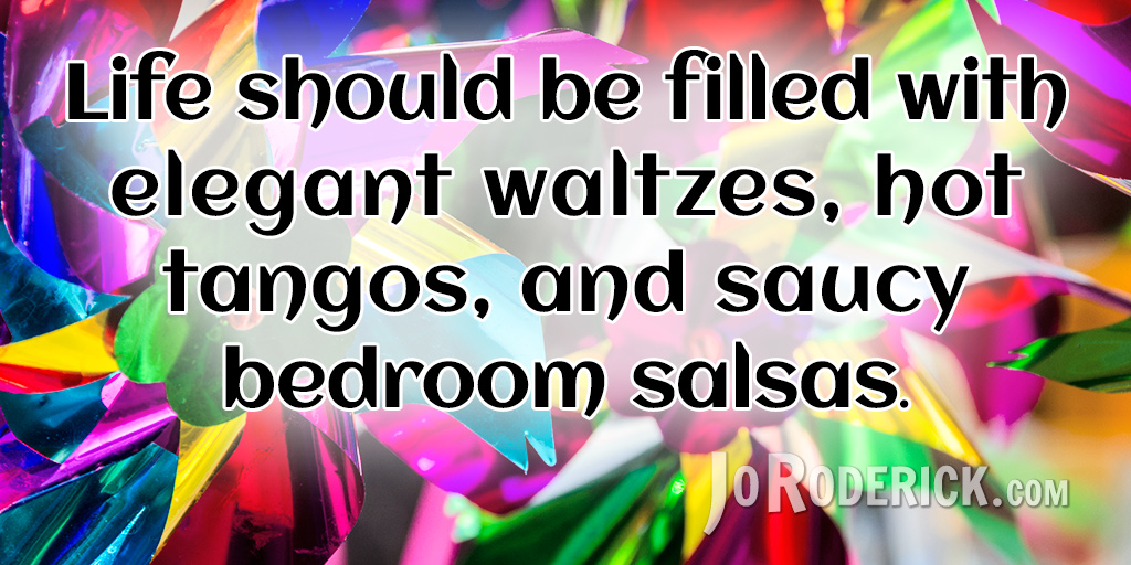Quote 029: Life should be filled with elegant waltzes, hot tangos, and saucy bedroom salsas. Join me on: JoRoderick.com | Facebook | Twitter