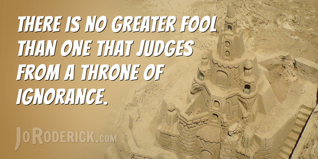 Quote 053: There is no greater fool than one that judges from a throne of ignorance. Join me on: JoRoderick.com | Facebook | Twitter