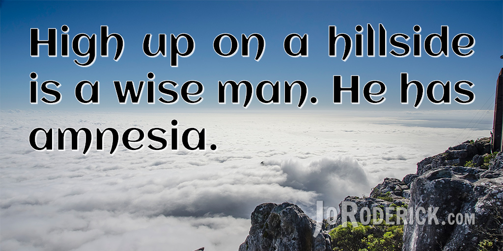 High up on a hillside is a wise man. He has amnesia.