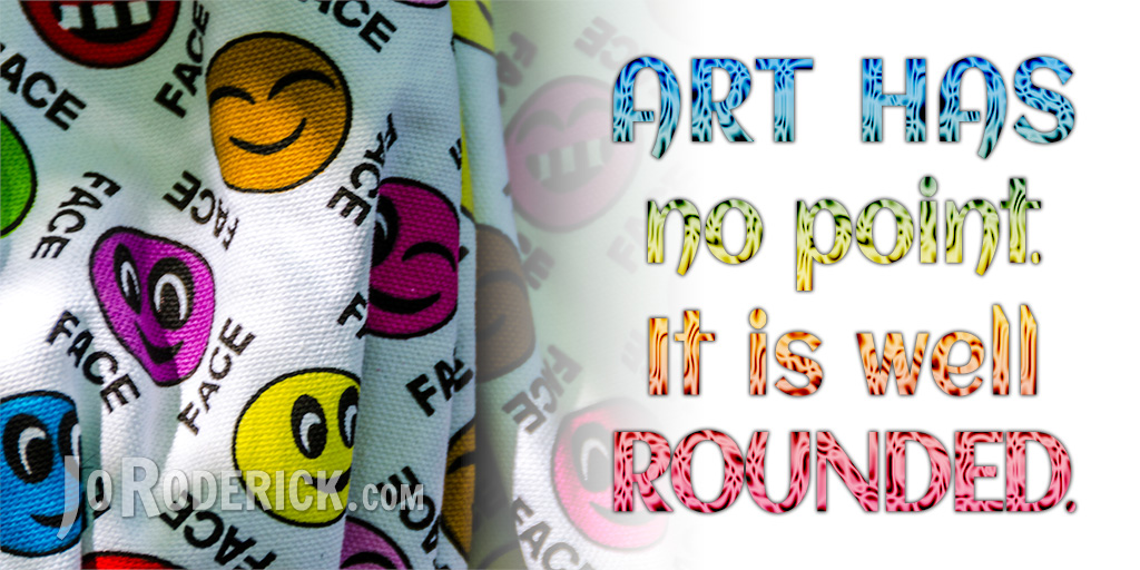 Quote 020: Art has no point by Jo Roderick · Published 2015/11/06 · Updated 2017/02/11 Quote 020: Art has no point. It is well rounded. Join me on: JoRoderick.com | Facebook | Twitter
