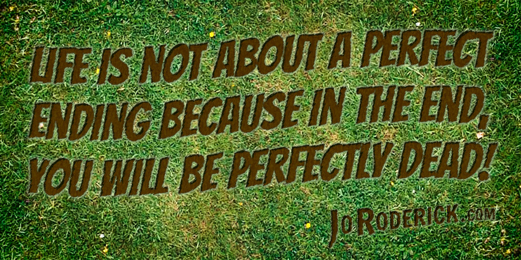 Quote 089: Life is not about a perfect ending because in the end, you will be perfectly dead! Join me on: JoRoderick.com | Facebook | Twitter