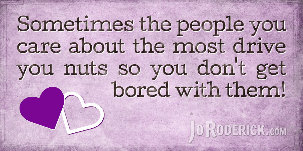 Quote 090: Sometimes the people you care about the most drive you nuts so you don’t get bored with them! Join me on: JoRoderick.com | Facebook | Twitter