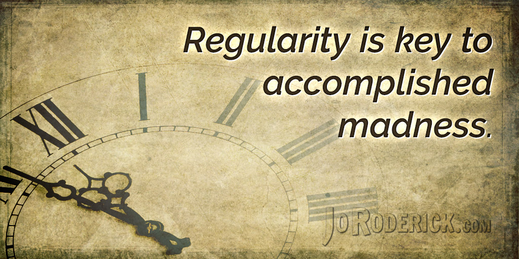 Quote 105: Regularity is key to accomplished madness. Join me on: JoRoderick.com | Facebook | Twitter