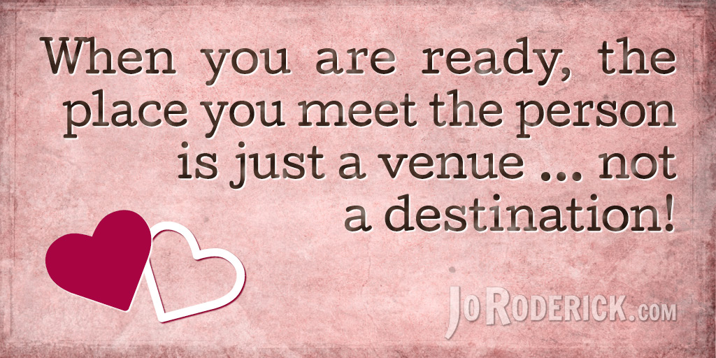 Quote 110: When you are ready, the place you meet the person is just a venue … not a destination! Join me on: JoRoderick.com | Facebook | Twitter
