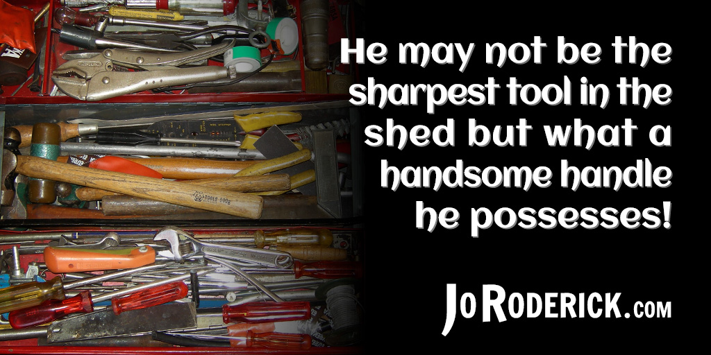 Quote 005: He may not be the sharpest tool in the shed but what a handsome handle he possesses! Join me on: JoRoderick.com | Facebook | Twitter