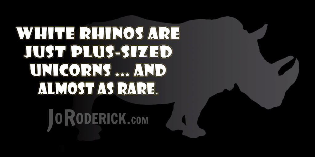 Quote 094: White rhinos are just plus-sized unicorns … and almost as rare. Join me on: JoRoderick.com | Facebook | Twitter